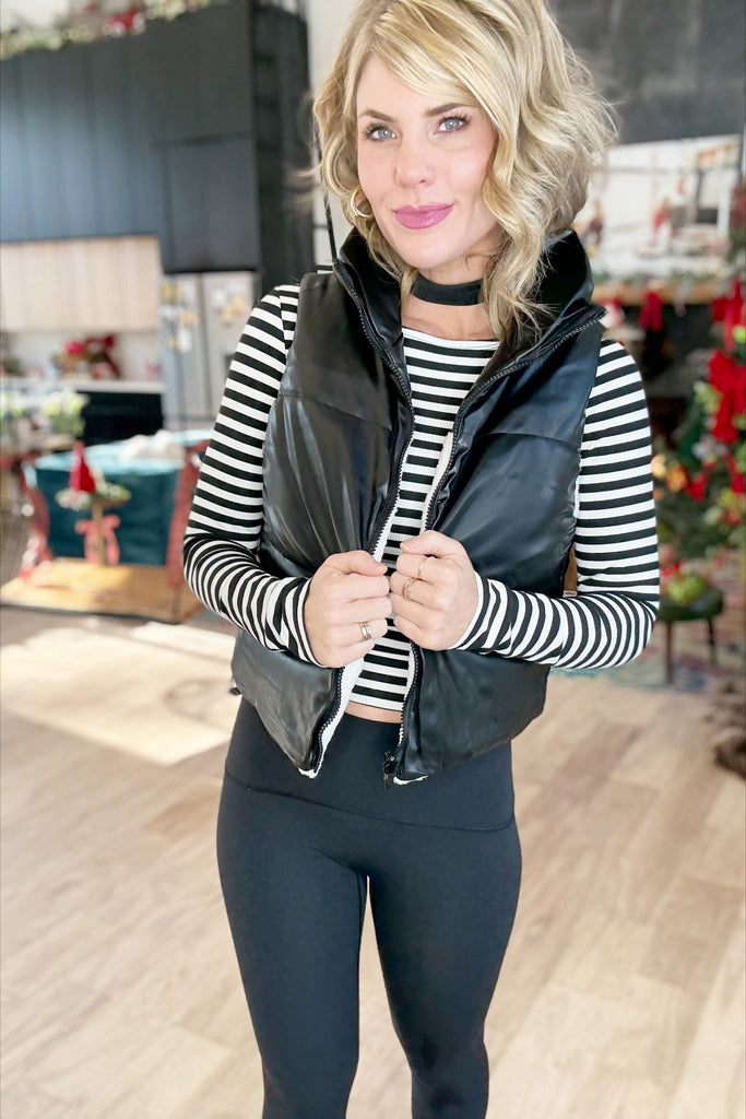 Adorable black and ivory striped long boat sleeve top. True to size fitted fit with good stretch. Size up if between sizes. 84% POLYESTER 16% SPANDEX